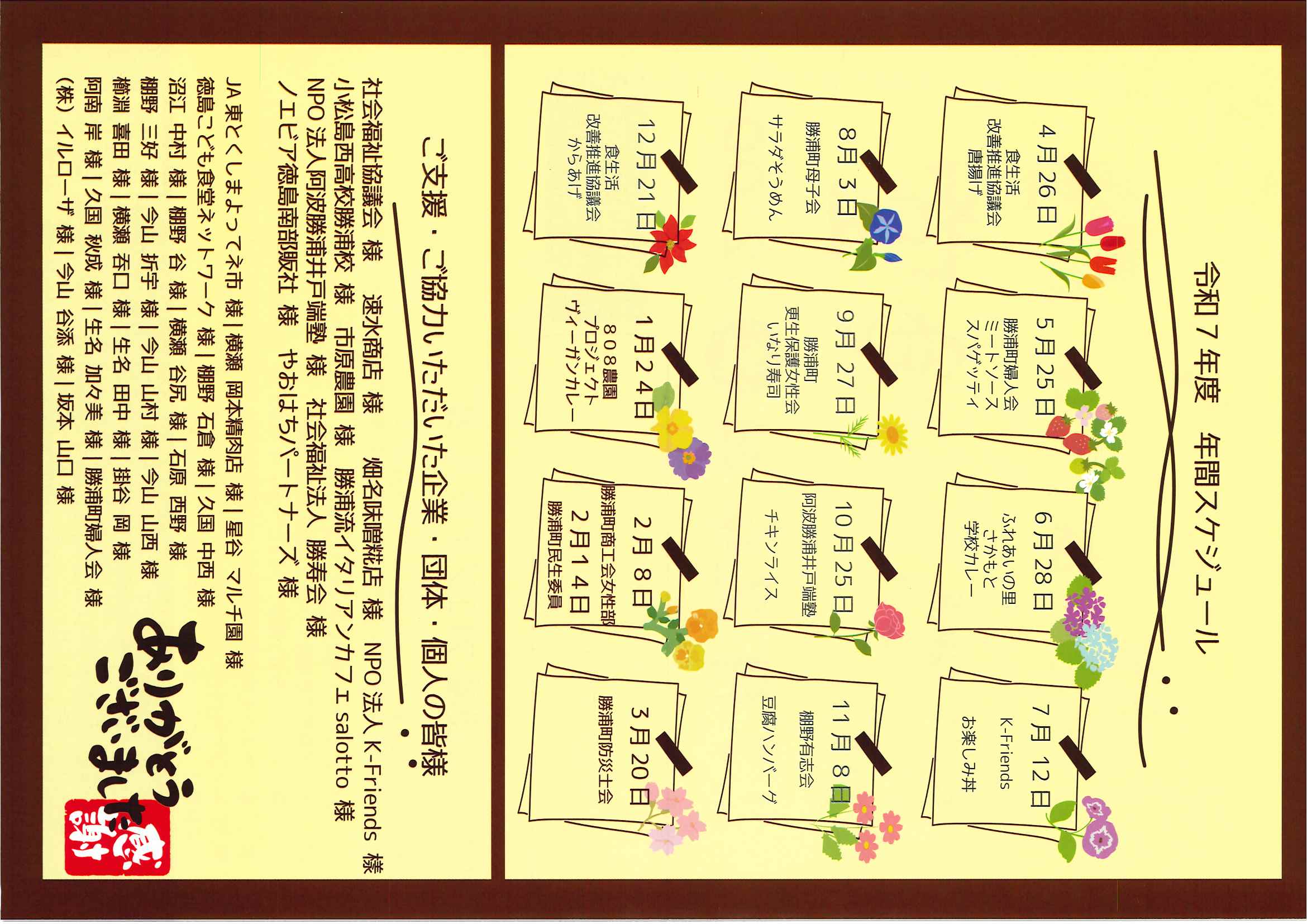 令和7年度 ヤオハチ食堂年間スケジュール